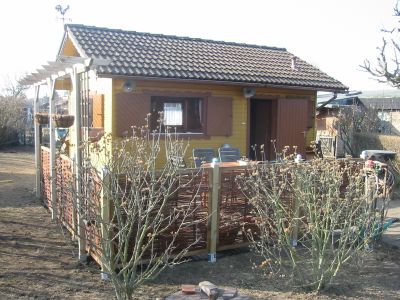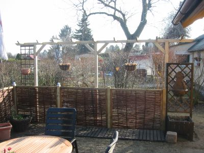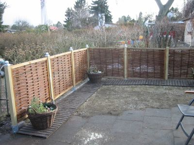 Die drei Hibisken hatten wir vor die künftigen Zaunfelder gesetzt